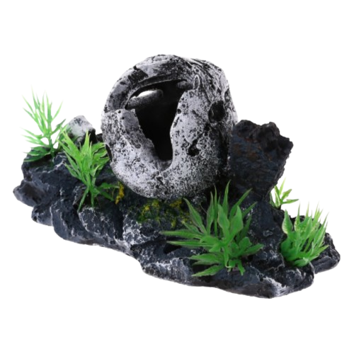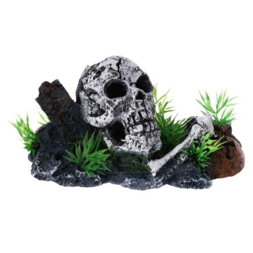 Diseña un entorno de vida natural diferente para peces con esta calavera hundida.
