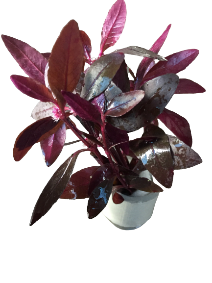 Posee hojas alargadas y angulosas de 6-7 cm de largo, los tallos de 15 a 20 cm, en raras ocasiones los 40 cm y de 10 a 15 cm de ancho. Sus tallos crecen en vertical de color rojo intenso y las hojas por debajo también, aunque en la parte de arriba son verde oscuro, rojo aviolatado o incluso rojizos dependiendo de la intensidad de la iluminación- Dificultad: Fácil