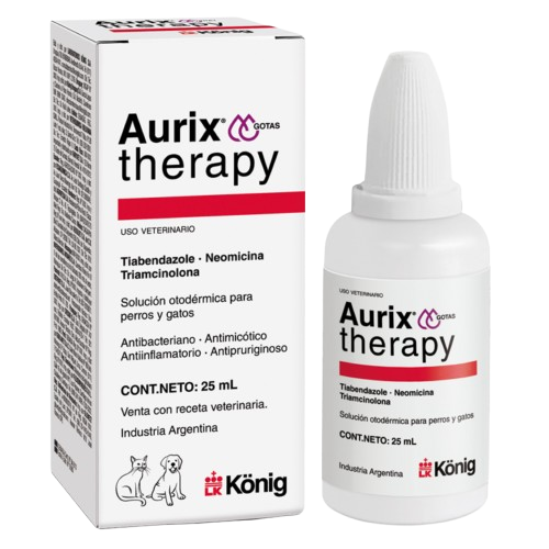 En los casos de otitis externa: previo a la aplicación de Aurix Therapy, remover el material ceruminoso y/o purulento del canal auditivo. Insertar el pico vertedor en el canal auditivo e instilar 4 a 8 gotas 2 veces al día.