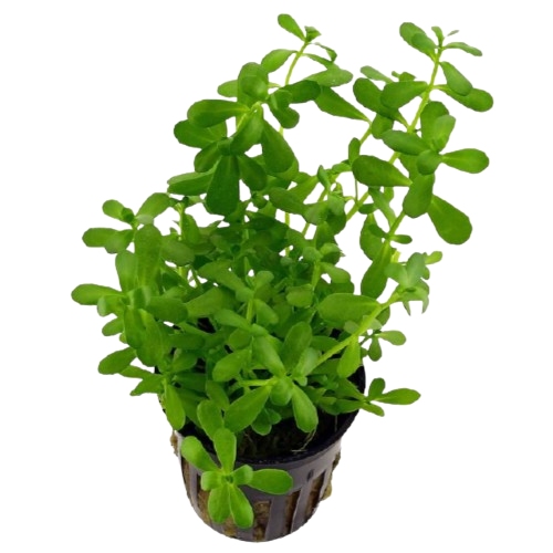 Es una planta de tallo delgado y erguido en sumergido, con hojas de color verde claro, de forma ovalada y dispuestas en pares opuestos en el nudo, el tamaño de la hoja es sobre 1-2 cm. dependiendo de las cantidad de la iluminacion en el acuario.