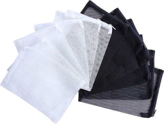 Estas bolsas de filtro son buenas para guardar objetos de medios grandes, tales como carbón de pellets, bolas biológicas, anillos de cerámica biológica, rocas de lava trituradas, zeolita, grava. No apto para carbón fino y granulado.