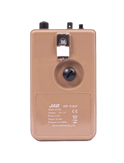 La Bomba de aire a baterías D-200 nunca dependerá de un enchufe para airear su acuario o recipiente con peces, ya que se alimenta exclusivamente con dos baterías standard tipo “D” que le otorgan una autonomía de hasta 6 horas. Equipa un motor súper eficiente y libre de lubricantes, que no emitirá excesivo ruido ni vibraciones que puedan estresar a los peces.