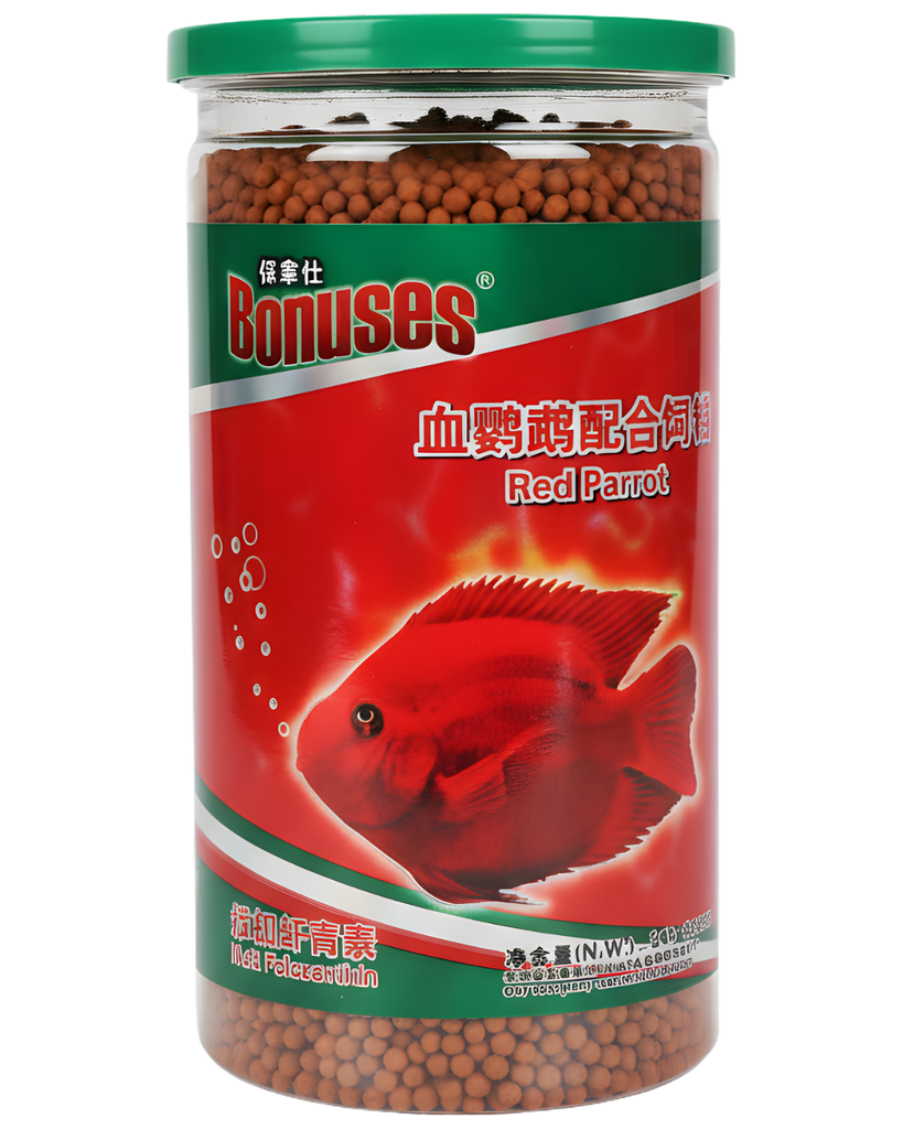 Realce del color: Este alimento está formulado para intensificar los colores rojo y naranja de los peces, especialmente de los cíclidos loro. Contiene ingredientes ricos en pigmentos naturales como la astaxantina, que ayudan a desarrollar y mantener un color vibrante.