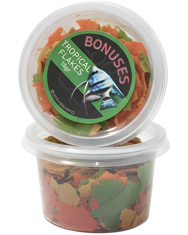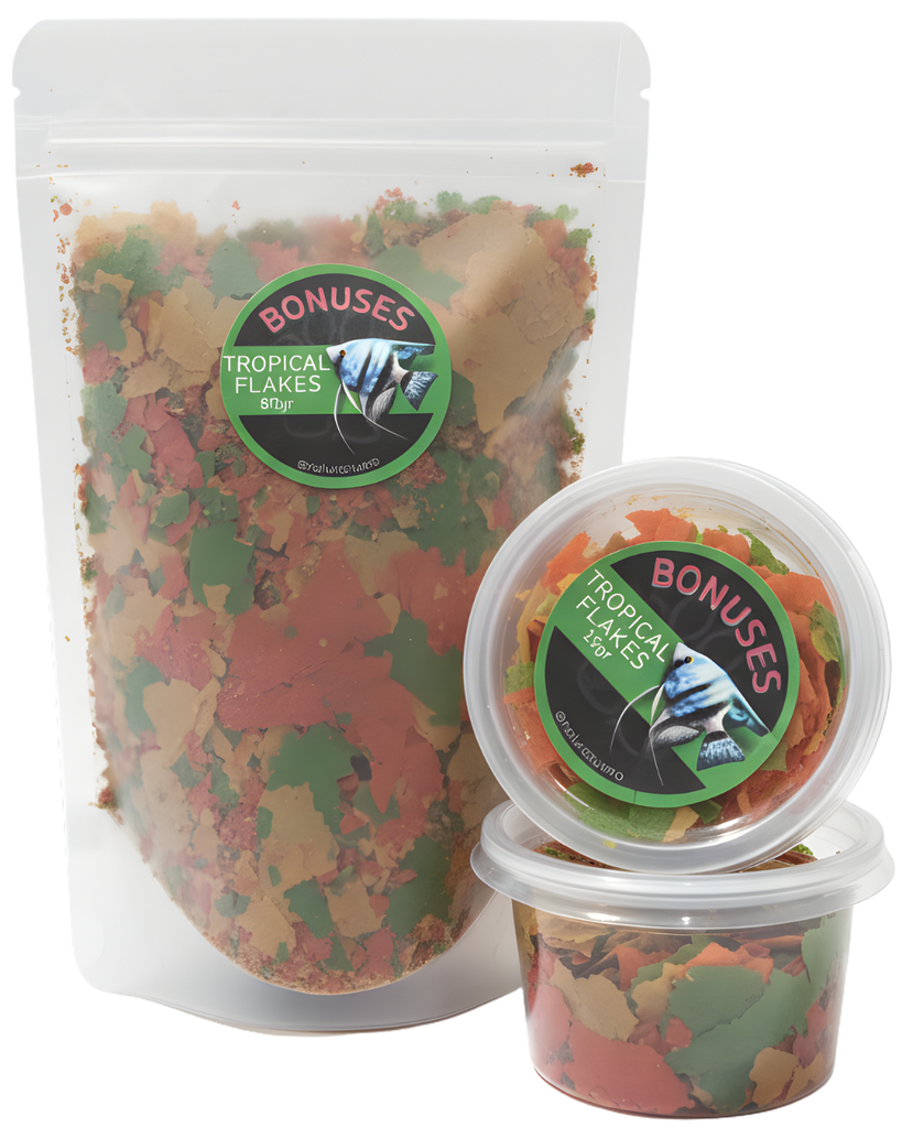 El alimento Bonuses Tropical Flakes es un alimento en hojuelas (escamas) diseñado para peces tropicales.