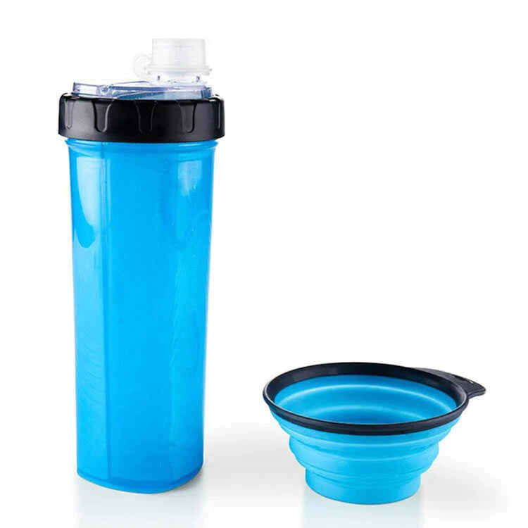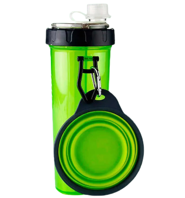 Botella de dos Divisiones para colocar el alimento o bebida de sus mascotas mas un plato desplegable