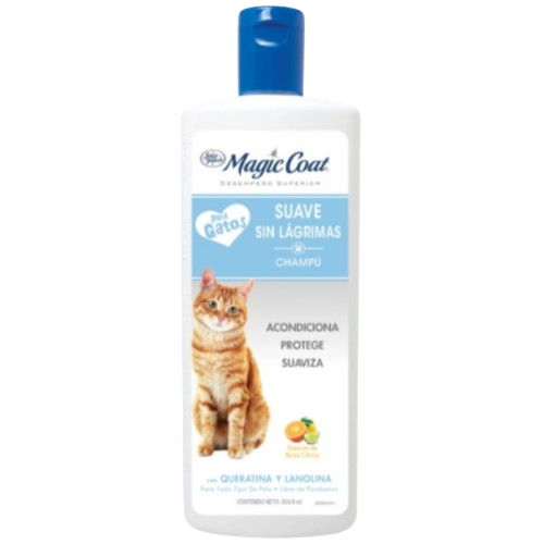Champú para gatos Magic Coat, especialmente formulado con ingredientes lo suficientemente suaves para gatitos y gatos con piel delicada. Enriquecido con queratina y lanolina, dos suaves agentes acondicionadores de la piel que calman e hidratan la piel.