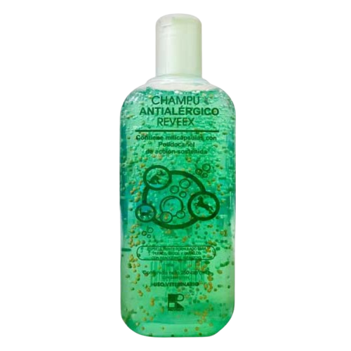 Champú hipoalergénico, Antialérgico, Antimicótico, vitaminado para la higiene periódica especialmente formulado para perros, gatos y caballos con reacciones alérgicas y que se rascan a menudo debido a irritaciones de la piel como eccemas o sarpullidos. De agradable olor, proporciona suavidad y un brillo sedoso al pelo. Limpia suavemente el pelo y la piel.