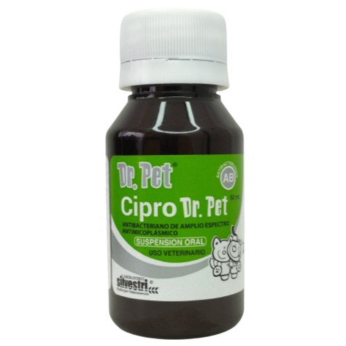 El Cipro Dr. Pet esta indicado para infecciones respiratorias, génito-urinarias y cutáneas e infecciones secundarias de enfermedades virales en perros y gatos.