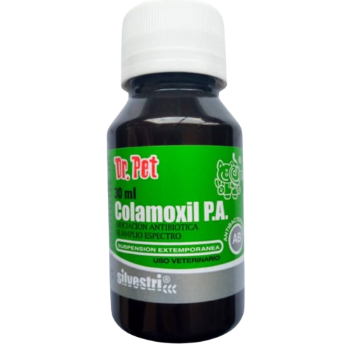 Preparación del Producto: Verter 18ml de agua potable en el frasco y agitar vigorosamente hasta que todo el contenido se haya disuelto. Volumen final: 30 ml. Esperar algunos minutos antes de proceder a la administración. Cada ml de producto reconstruido contiene: Amoxicilina base, 100 mg; Colistina (como sulfato), 500.000,00 UI.
