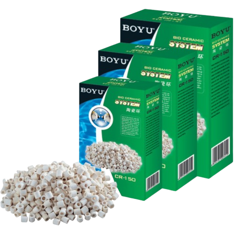Los anillos de cerámica de Boyu tienen una alta porosidad y su forma permite un gran flujo de agua, ideal para el desarrollo de bacterias esenciales para una buena filtración biológica de su acuario o estanque.