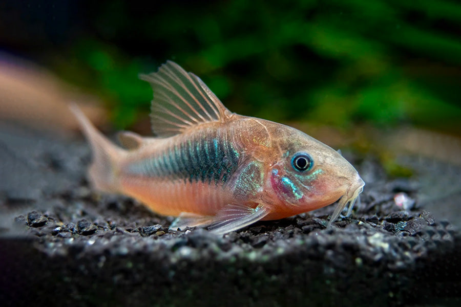 La Corydora Bronce (Corydoras aeneus) * Nombre Científico: Corydoras aeneus * Nombre Común: Corydora Bronce, Pez Gato Bronce * Origen: Sudamérica (desde Colombia hasta Argentina, con amplia distribución). * Tamaño Adulto: Generalmente entre 5 y 7 cm. * Esperanza de Vida: Puede vivir entre 4 y 10 años en buenas condiciones. * Comportamiento: * Muy pacífico y sociable. * Es un pez de cardumen, por lo que debe mantenerse en grupos de al menos 5 o más individuos para que se sienta seguro y activo. * Pasa la mayor parte del tiempo buscando alimento en el fondo del acuario. * Requisitos del Acuario: * Litros Mínimos: Se recomienda un acuario de 60 a 80 litros en adelante para un grupo pequeño. * Sustrato: Preferiblemente arena o grava fina para proteger sus sensibles barbillones. * Parámetros del Agua: * Temperatura: 22 °C a 28 °C. * pH: 5.0 a 7.5 (se adapta bien a un rango amplio). * Dureza (GH): 1 a 20 dGH. * Alimentación: * Omnívoro. Acepta una gran variedad de alimentos. * Necesita alimento que llegue al fondo, como pastillas o gránulos específicos para peces de fondo, complementado con alimento vivo o congelado (artemia, dafnias, etc.)