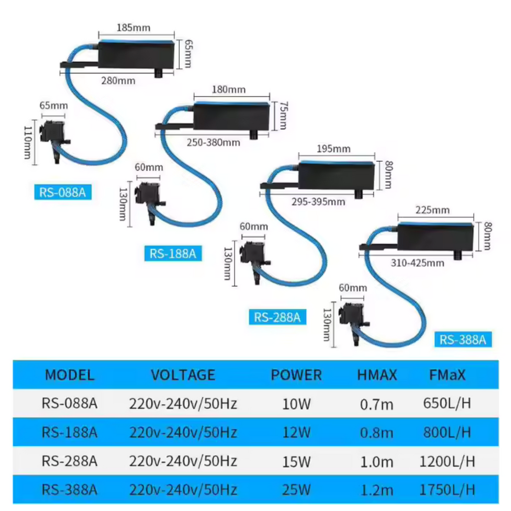 Modelo: Rs-088A.Frecuencia: 10WVoltaje: 110V/ 60HzA. Max: 0.7m 650 L/H