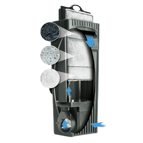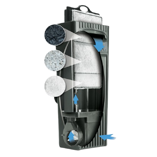 Diseño Compacto y Discreto: Su diseño interno permite que el filtro ocupe un espacio mínimo dentro del acuario y se mezcle discretamente con el entorno acuático.