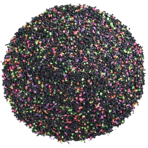 - Color divertido: la arena negra con reflejos fluorescentes complementa la decoración de tu acuario