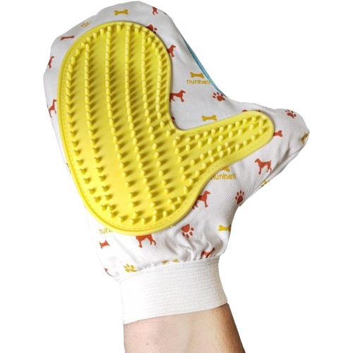 Guante de tela y goma, para mascotas. Ideal para deslanado en seco y para la fácil distribución del champú en el baño.