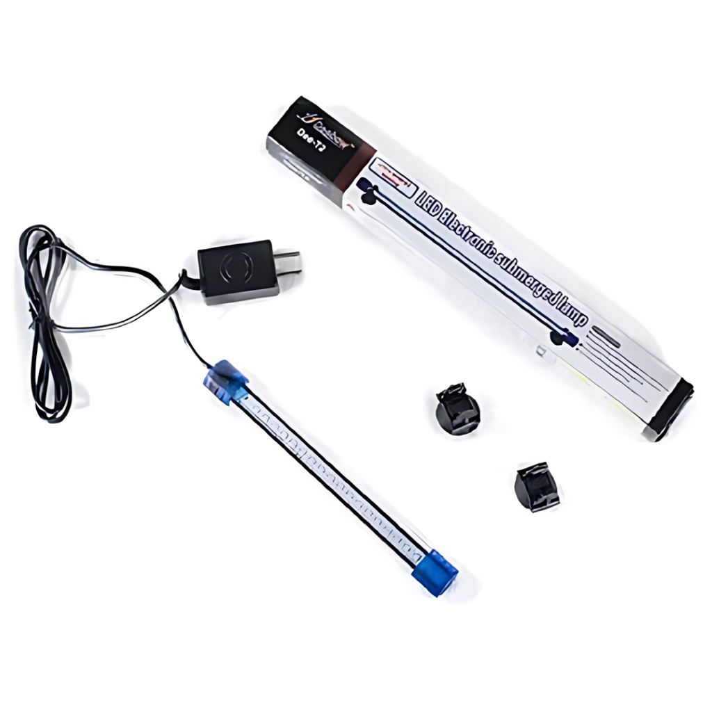 La principal diferencia entre ambos modelos radica en las opciones de color de luz. Mientras que el DEE-T2 se enfoca en las combinaciones de luz blanca y azul, el DEE-T3 a menudo incluye una opción RGB (multicolor), lo que brinda una mayor variedad de tonalidades para personalizar la iluminación de tu acuario. Ambos modelos mantienen la misma fiabilidad, el diseño sumergible y la facilidad de instalación con ventosas.
