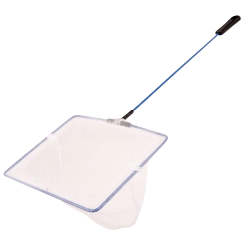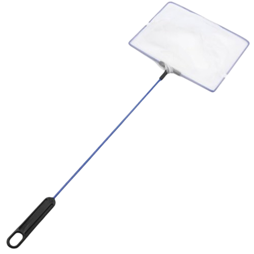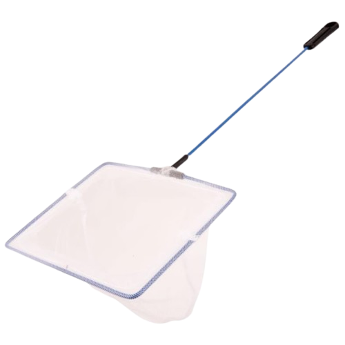 Consiste en una malla resistente y a la vez sensible para no afectar las aletas de los peces, con agarradero cómodo y suficientemente largo para un buen alcance en toda la pecera.