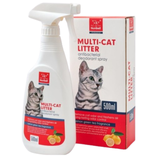 Desodorante antibacteriano en spray, ideal para aplicar en zonas donde frecuente el gato, o en el arenero.